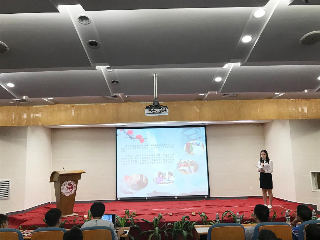 大会伊始,会场屏幕上展示了材料学院暑期19支实践团的实践照片,并结合各团队的实践汇报为2017级新同学们带来了一场别出心裁的实践之旅。石墨烯产品、晶硅电池薄膜电池、新型稀土功能材料、船体防锈防污涂料的制作与应用,使观众了解到科创与实践相结合的创新实践模式;苏绣的制作工艺带领观众发现传统艺术的无限魅力;河小禹实践团警示了当今水质污染的严重程度;国旗护卫队实践团勉励大家铭记历史,勿忘国耻!湖里区挂职团队呼应国家“大众创业、万众创新”的热潮,创新了社会实践新模式;贵州息烽实践团撼动人心的志愿支教之旅温暖了在场每一位观众。