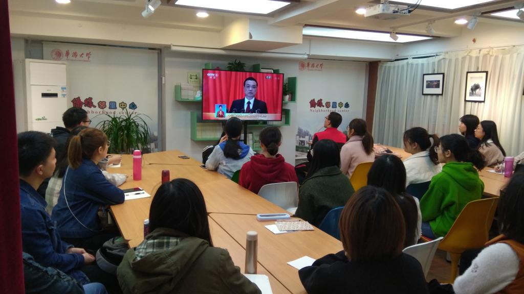 在学生处的统一安排下,学生社区已经连续3年组织党员、学生观看两会直播,引导广大同学深入学习会议精神,正确认识国家发展大势,这已成为学生社区贯彻落实全国高校思想政治工作会议精神,推进先锋社区建设的有效举措。