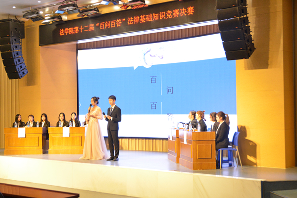 “百问百答”法律知识竞赛是法学院的特色品牌活动之一,旨在通过竞赛的方式切实提高学生学法用法的积极性,增强其法律观念,全力营造全校学习法律的良好氛围。本届比赛法学院积极筹备并扩大影响力,除了得到本学院同学的热烈支持,还吸引了其他学院同学的广泛参与,掀起了全校同学学习法律知识的新高潮。