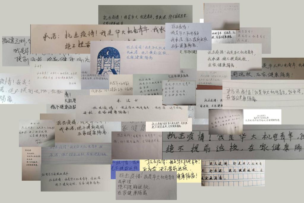 一句句祝福语,抒发了对最美逆行人的崇高敬意;一份份承诺书,凸显了机电学子抗“疫”必胜的决心;一封封抗“疫”前线递来的家书,展现了机电儿女们的家国情长……