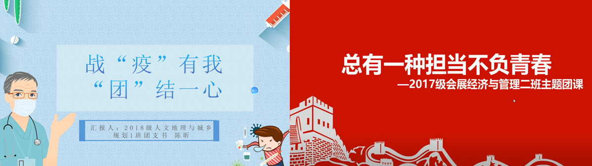 其中,2017级会展经济与管理二班团支部书记周琪翔同学以《总有一种青春不负担当》为主题,讲述了在抗疫一线工作者的光荣事迹,激励同学们向榜样学习,不负青春;2017级旅游管理一班团支部书记谢奇同学围绕《国际抗疫的大国担当,国内战场的大国守护》,介绍了我国在疫情期间所彰显的大国风范、所担负的大国责任以及对全国人民生命健康的强有力守护;2018级会展二班团支部书记罗尹姗同学以《致敬最美逆行者》为主题讲述抗疫一线逆行者们的故事,向他们致以最崇高的敬意。