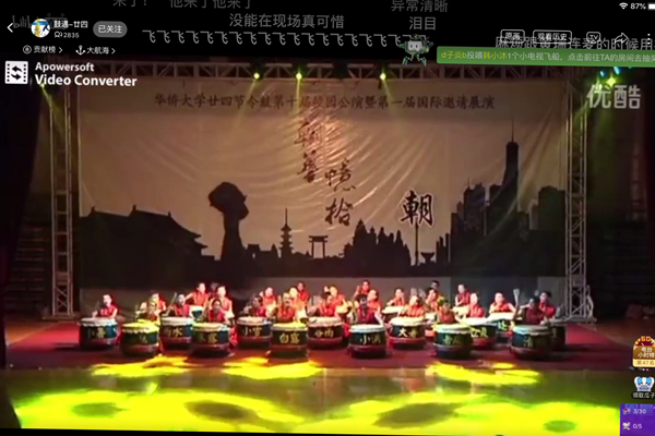 近日,我校二十四节令鼓队(厦门校区)通过BiliBili平台组织了一场云联谊活动,学子在云端相聚,共同回顾二十四节令鼓队的成长发展过往,以及同学们在华园一起走过的点点滴滴。本次活动利用网络直播的方式进行线上实时互动,历时近六个小时,观看人数峰值达到3000余人。