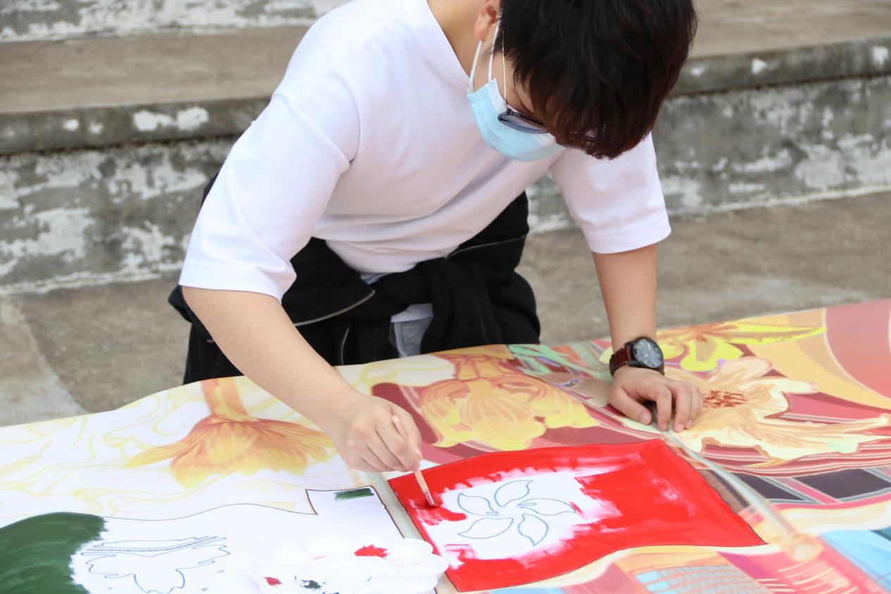 5月3日下午的泉州校区北区操场,上百名境内外同学用油彩笔一笔一画,从“1922年中国共青团成立”到“1949年中华人民共和国成立”,从“1980年创办经济特区”到“2008年台湾与大陆实现三通……”,慢慢填涂绘制出中国共青团建团100周年期间祖国的沧桑巨变与伟大成就。最终,随着画卷的展开,一个个在中国共产党的领导下的百年团史故事跃然纸上。
