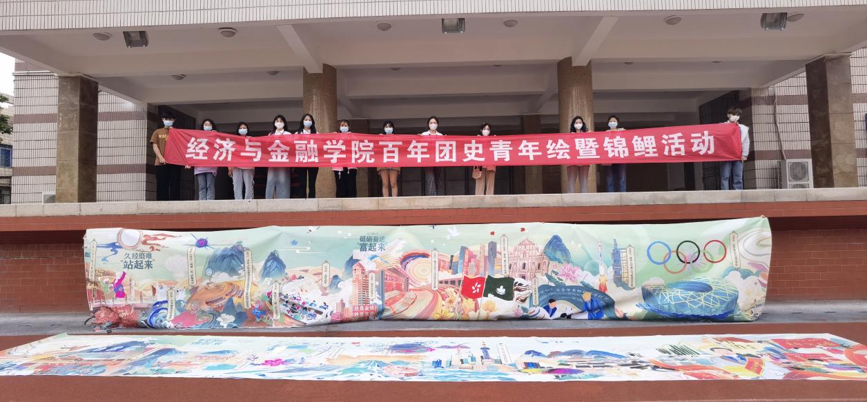 这是经济与金融学院在建团100周年到来之际举办的“百年团史青年绘”集体创作活动,通过对中国共产主义青年团成立100周年,百年栉风沐雨、中国青年运动华章的绘制,表达青年人对历史的铭记与感恩。以此为标志,经济与金融学院立足学院特色,正式启动以“百年建团兴青年,金心跟党向未来”为主题的庆祝中国共青团建团100周年活动,主要分为“主题宣传”和“线下活动”两类,共计15余项活动。