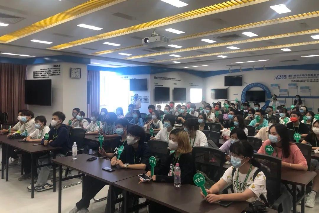 在厦门特宝生物工程股份有限公司,同学们穿上无菌服、戴上无菌帽、套上鞋套,走进无菌生产车间。在工作人员的讲解之下,同学们了解了医药生产的过程,也认识了可一次性存放40万支药剂的冻干机、可高度过滤杂质的填料、自动化的西林瓶生产线等设备。在厦门欧米克生物科技有限公司,同学们参观了企业研发实验室和展览室,了解到了公司的发展历程、研究领域、人员团队的搭建等。研发总监刘刚呼吁大家,作为生物系的学生,要认真学好专业知识,增强本领和能力,敢想敢干、真抓实干。