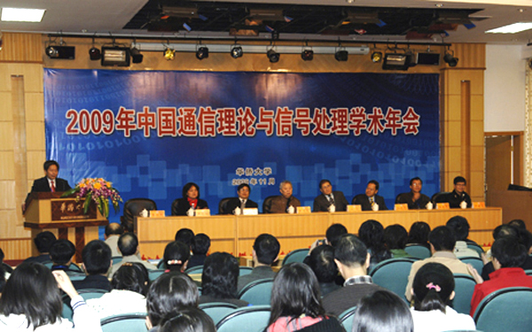由中国通信学会通信理论与信号处理专业委员会主办,华侨大学承办的2009年中国通信理论与信号处理学术年会今日举行。中国工程院院士张乃通教授、华侨大学校长丘进教授、中国通信学会通信理论与信号处理专业委员会主任郑宝玉教授应邀担任大会主席并出席学术年会开幕式。华侨大学信息科学与工程学院副院长蔡灿辉教授主持开幕式。