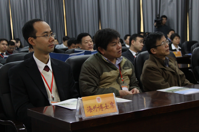 丘进在致辞中坦诚地向海外留学博士介绍华大的办学历史、现状,学科优势,以及为引进人才提供的相关待遇、优惠政策、科研环境等。