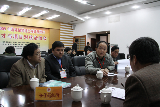 开幕式结束后,海外留学博士们与信息、计算机、化工、材料、土木、建筑、机电、经济金融等学院以及分子药物所等拟对接单位负责人就学科建设、科学研究、专业方向、合作项目等进行了亲切友好的交流和探讨。