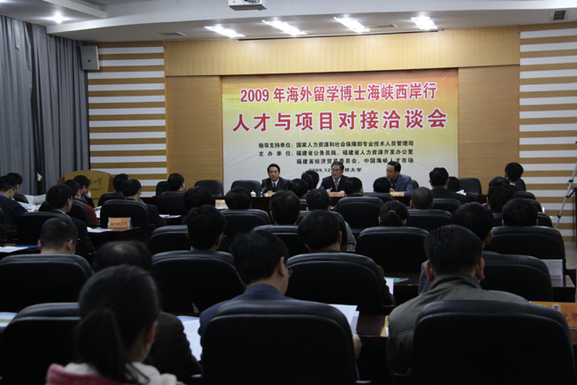 洽谈会由福建省公务员局、省人力资源开发办公室、省经济贸易委员会、中国海峡人才市场等单位主办,华侨大学专场洽谈会是此次海外留学博士海峡西岸行人才与项目对接洽谈会的第二站。福建省公务员局副局长黄正风主持开幕式,华侨大学校长丘进,泉州市委组织部副部长、市人事局局长吕炜民等领导出席。