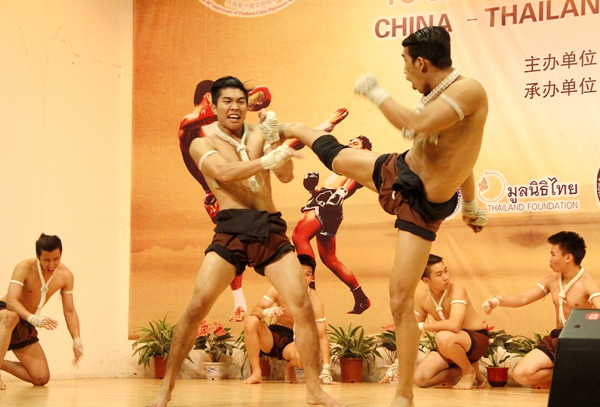 泰拳是一项以力量与敏捷著称的运动。当日,来自泰国的14名男女拳手分段展示了古代泰拳、“缠绳式”中期泰拳、戴上手套的当代泰拳以及泰拳操。泰拳手们激烈性的搏击以及敏捷的动作表演,赢得了现场的阵阵掌声和欢呼声。
