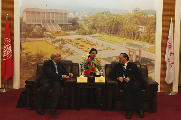 校长贾益民在陈嘉庚纪念堂二楼接待室会见了Farzaneh教授。双方就国际化办学、学术交流、校际合作等问题交换了意见,对在华侨大学创建一个国际前沿的生物医学研发中心表示了浓厚的兴趣。