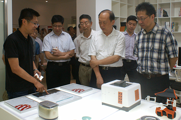 张帆(右一)、魏刚(右二)、兰文等参观我校产品创新设计研究所