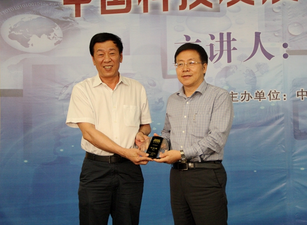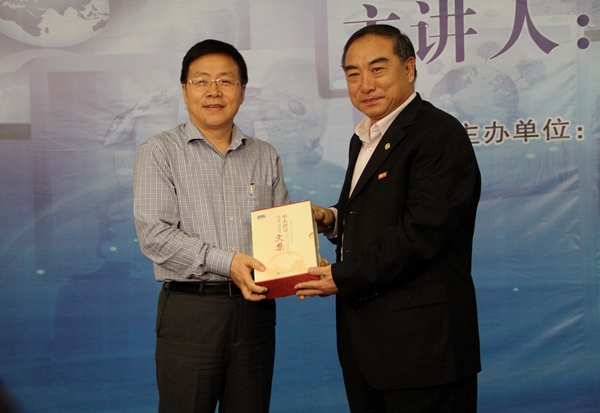 陈万里向刘丛强颁发“华大讲堂”主讲嘉宾纪念牌