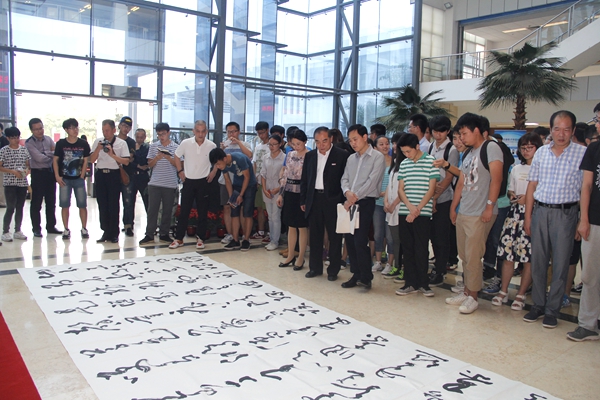据悉,此次方志勇捐赠的大型书法作品《陋室铭》,长5.3米,宽2.2米,学校将把其挂于郑年锦图书馆馆内,供全校师生欣赏、学习。