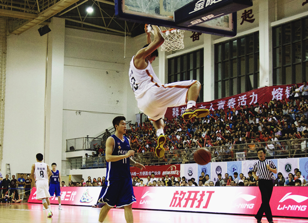 新人刘恒驿表现抢眼。图为在与上海交大比赛时上篮。(林威宇 摄)