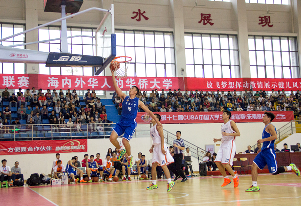 本场比赛双方打得异常胶着,上半场张翰奇频频内线进攻得手,刘骏峰三分球接连命中引爆全场,但华大的后场篮板保护不利,被矿大打出多次二次进攻,矿大的全场紧逼式防守同样给华大男篮造成了不小的麻烦。下半场,中国矿大改变战术,放弃阵地战,全部改打长传快攻反击,利用华大内线回防速度慢这一软肋一度反超比分,随后比赛陷入拉锯战,林靖楠的连续突破稳住了阵脚。最后时刻,凭借着王嘉琪的两个关键快攻上篮,华大逐渐拉开比分。最终,华侨大学以93:88险胜中国矿大,第13次获得东南赛区冠军。张翰奇荣获东南赛区最有价值球员(MVP)。