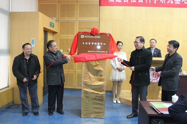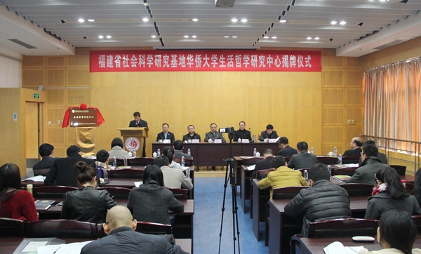 入选首批福建省社会科学研究基地的华侨大学生活哲学研究中心,1月24日上午在厦门校区举行揭牌仪式。福建省社科规划领导小组副组长、省社科联党组书记、副主席冯潮华,华侨大学校长贾益民,福建省社科规划办主任陈飞,中国社科院哲学研究所研究员、《哲学研究》杂志社常务副主编鉴传今共同为研究中心揭牌。华侨大学副校长曾路主持揭牌仪式。