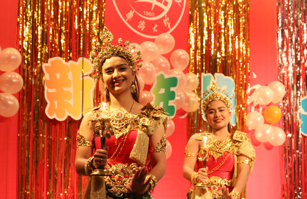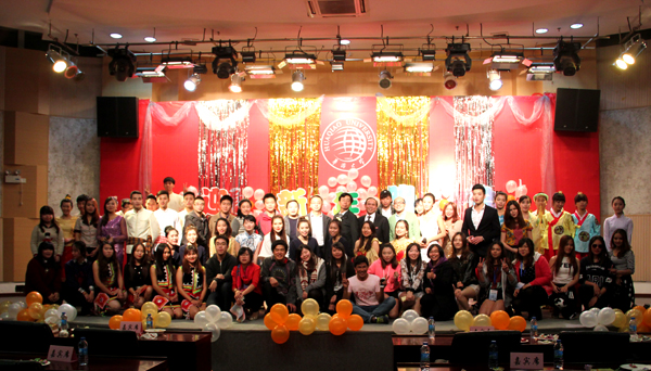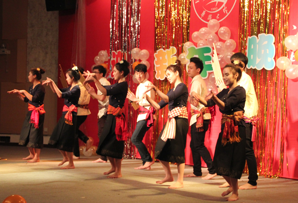 华侨大学2015年中外师生迎新年晚会12月29日晚在明德堂举办。来自缅甸、泰国、老挝、马来西亚、朝鲜、印尼、菲律宾、越南等国家的两百名多学生参加了晚会。