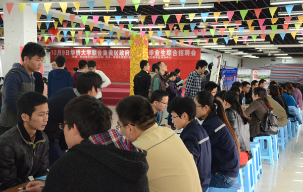 我校联合集美区政府2015届毕业生综合招聘会12月9日在厦门校区学生活动中心举行。此次招聘会吸引众多知名企业参与,为毕业生提供涵盖土木建筑、机械电气、材料化工、教育培训等领域近千个工作岗位。厦门信华科技有限公司、厦门明达玻璃有限公司、中航物业管理有限公司、联发集团等企业纷纷向毕业生伸出橄榄枝,企业与学生之间互动活跃。