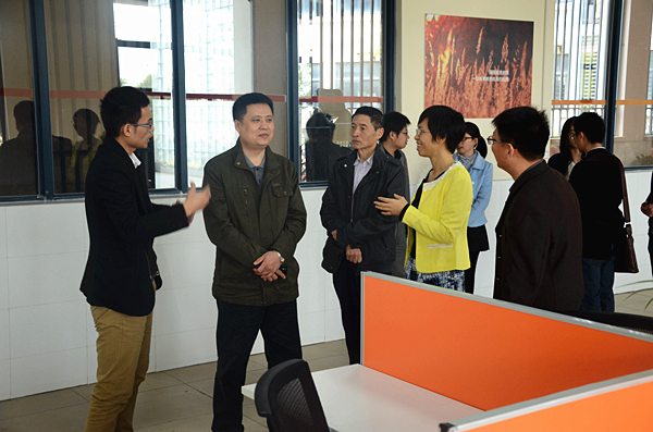 验收组参观我校大学生创业园团队办公区