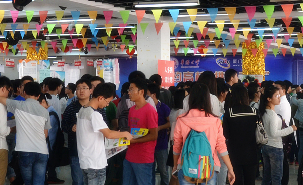 11月25日下午,华侨大学联合厦门市人才服务中心综合招聘会在厦门校区学生活动中心举行。本次招聘会吸引了福建六建集团、厦门路桥信息工程公司、厦门太古可口可乐、祥达光学等近百家知名企业参加,涵盖了金融贸易、汽车机械、IT通讯软件、教育、房产、鞋服以及百货食品等行业,提供逾2000个岗位。