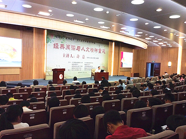 讲座中,许总围绕“为何要阅读经典”、“什么是经典”、“怎样阅读经典”以及“如何看待经典”四个问题,指出了在当代倡导经典阅读对人文精神重建的重要意义。