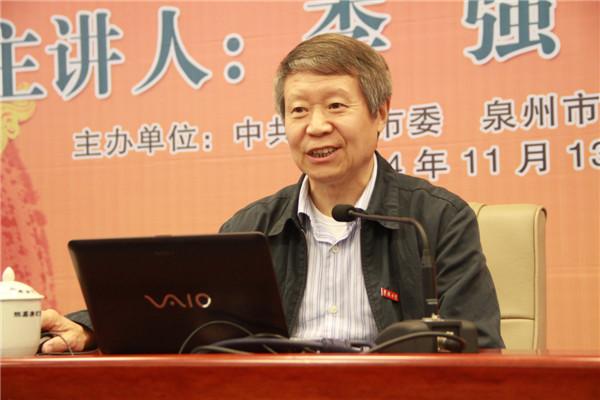 当日在陈嘉庚纪念堂科学厅,泉州市领导杨俊峰、周银芳、陈沈阳、沈耀钦、许昆贞、林俊其等市委学习中心组成员,市直有关部门,在泉各高校、各民主党派负责同志,我校党委书记关一凡、副校长彭霈,校党委中心组扩大会议成员,全体中层干部及部分师生到场听取报告。我校副校长曾路主持报告会。泉州市政协主席杨俊峰为李强教授颁发“华大讲堂”主讲嘉宾纪念牌,关一凡为其颁发华侨大学兼职教授聘书并佩戴校徽。