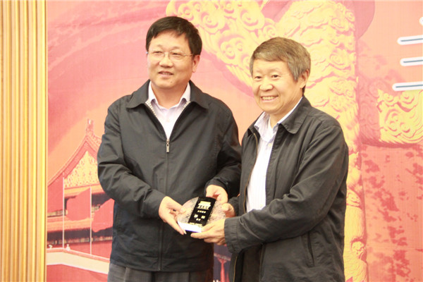 泉州市政协主席杨俊峰为李强教授颁发“华大讲堂”主讲嘉宾纪念牌