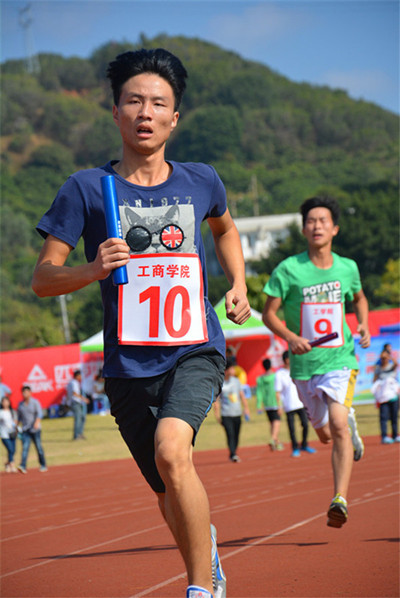 万米接力是今年运动会的新项目,共有10个院代表队参加。该项目中,每个代表队有10名队员。4名女生每人跑800米,6名男生每人跑1200米。经过激烈的角逐,工商管理学院夺得第一名,公共管理学院获得第二名,旅游学院获得第三名。工学院、美术学院、经济与金融学院、外国语学院、生物医学学院分列4到8位。