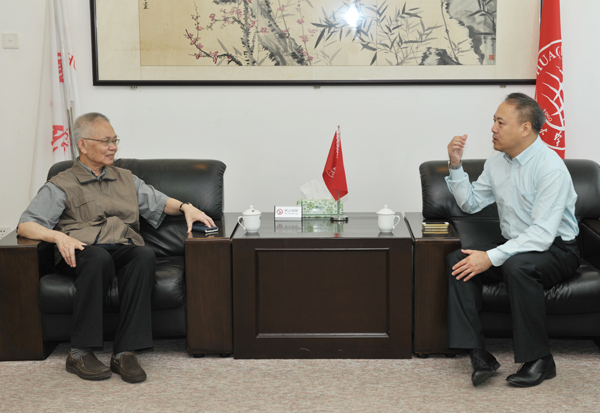 副校长曾路与校董许丕新(左)亲切交谈