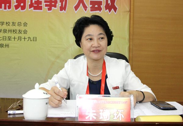 校党委副书记、校友总会副会长、校友总会理事长朱琦环出席会议