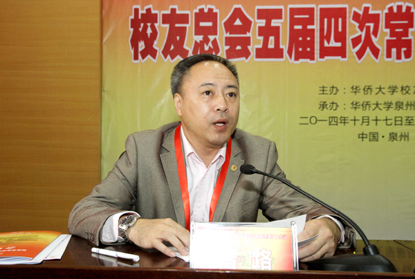 随后,王强向与会代表作理事会工作报告。香港、海南、厦门、泉州校友会代表先后发言,分享了各自校友会开展工作的经验及成效。各地校友会代表围绕“校友会的组织建设和科学管理”这一议题展开研讨交流。会议期间,龙岩校友会张小珍、刘天赤伉俪还向校友总会捐赠了10080元人民币,表达他们对华大校友工作和校友总会的关心和支持。