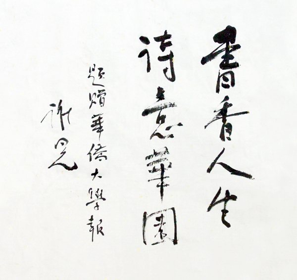 谢冕是华大文学院兼职教授、《华侨大学报》“中国高校诗歌联展”顾问。此番回校,他还与华大文学院师生亲切座谈,并分别以“学园 乐园 家园”和“书香人生 诗意校园”题赠华侨大学和华侨大学报。