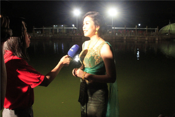 谢秀英是华大泰国军官班的学生。她身着泰国民族服饰,刚刚放下一盏水灯,祝愿家人健康平安。面对央视和福建台的记者的采访,她介绍了泰国水灯节的习俗。原来,泰国水资源丰富,泰国百姓为感谢水神的恩赐,每年11月他们都举行水灯节以祭神灵。久而久之,水灯渐渐被赋予了更多的含义,人们希望通过放水灯来祈福消灾、寄托思念。