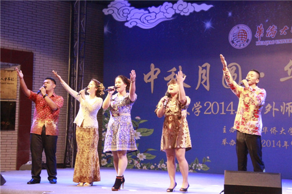 中秋晚会上境外生献唱《明月几时有》