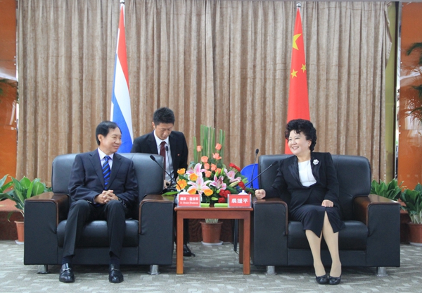 中国国务院侨办主任裘援平会见泰王国泰中文化经济协会会长颇欣一行
