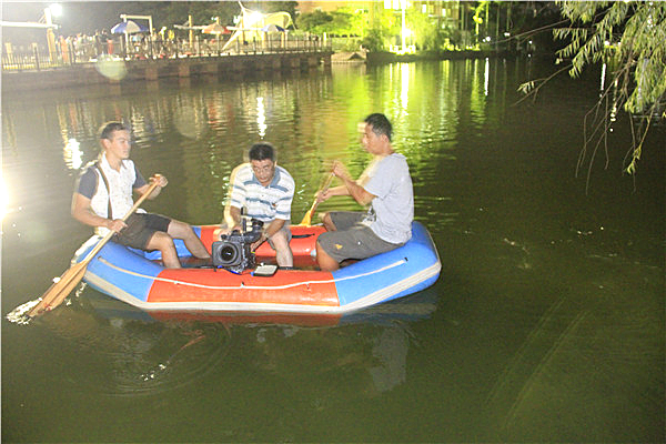 秋中湖畔投放水灯、燃放天灯现场安排了水上流动机位