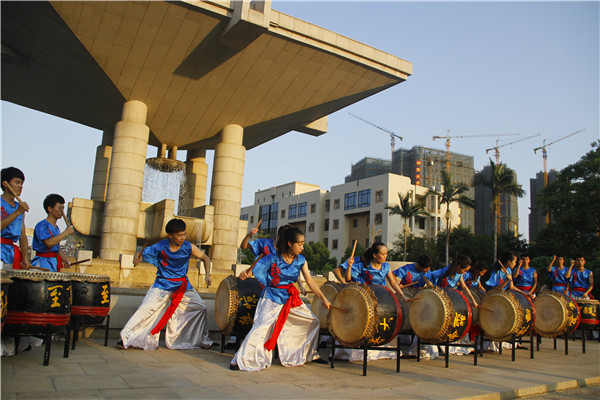 二十四节令鼓队在承露泉边彩排