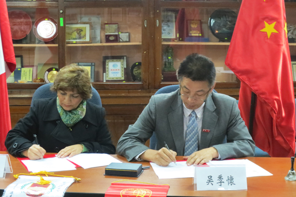 在秘鲁访问期间,吴季怀代表学校与秘鲁特鲁希略国立大学签订了合作协议。特鲁希略国立大学副校长波卡·伽西雅、学校国际交流处主任阿达·伽乐格丝参加了签字仪式。根据协议,双方将就中文教育、汉语夏令营、师生互换及学术研究等方面开展广泛的合作。