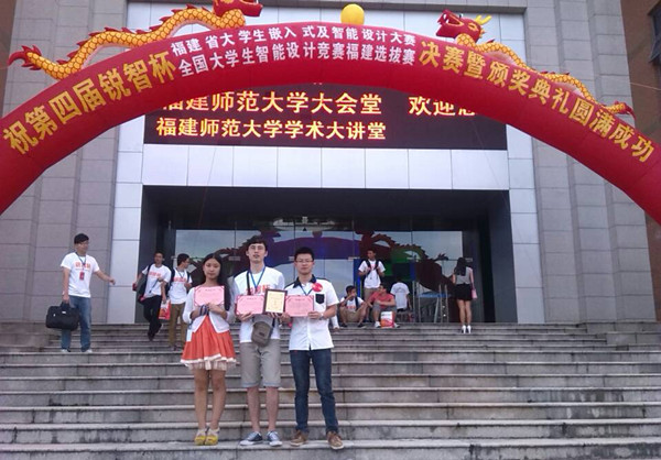 7月19日下午,第四届“锐智杯”福建省大学生嵌入式及智能设计大赛决赛在福建师范大学展开激烈角逐。我校计算机科学与技术学院余肇祯、任若男、林启元组成的华嵌团队参赛项目《尿不湿提醒器》(指导教师:杜勇前)获二等奖,李瑞、李斌、吴友达、蒋晨昊组成的梦想团队参赛项目《循迹可控移动式视频监控》(指导老师:王田)获三等奖。