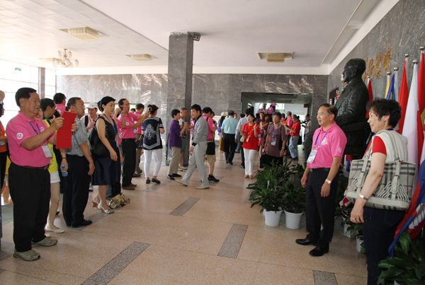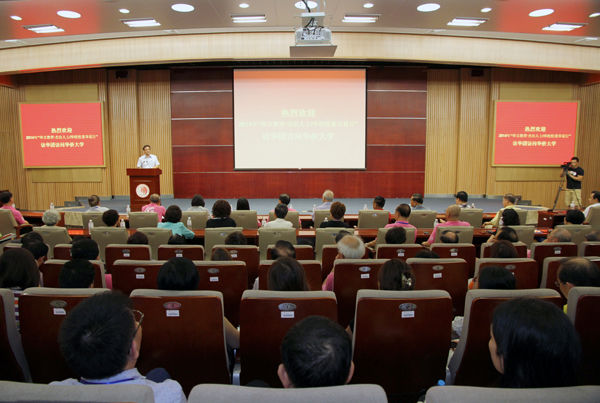 7月13日上午,由中国海外交流协会主办、福建省海外交流协会承办的2014年“华文教育·杰出人士/华校校董华夏行”访问团到华侨大学参观访问。访问团由来自全球五大洲32个国家的150名海外华校校董及华文教育界的杰出人士组成。