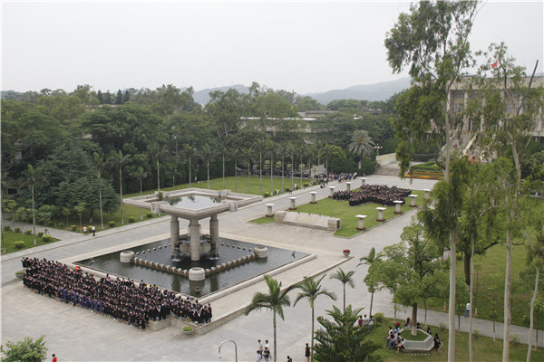 6月29日上午,陈嘉庚纪念堂前,在校生敲起了二十四节令鼓,舞起了醒狮,为5645名毕业生壮行。毕业生代表在嘉庚广场上“写”就了一个大大的“华”字。7点30分,随着飞行器的起飞,在场的学生、老师和家长纷纷抬头仰望。毕业生们朝着装载摄像机的飞行器挥手欢呼,并将手中的帽子扔向高空,现场一片沸腾。