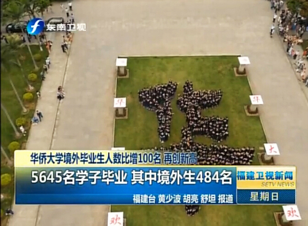 昨日举行的华侨大学2014届毕业典礼暨学位授予仪式现新亮点,与往届不同的是,在福建广播电视新闻中心和星空动力科技有限公司的友情支持下,华侨大学首次采用飞行器航拍毕业典礼。