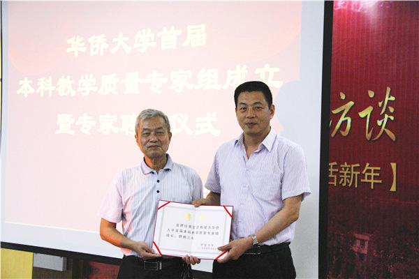 6月5日下午,华侨大学本科教学质量专家组成立暨专家聘任仪式在李克砌纪念楼五层会议室举行。23名教学业绩显著的一线教师受聘首届专家组成员,副校长吴季怀为其颁发聘书。