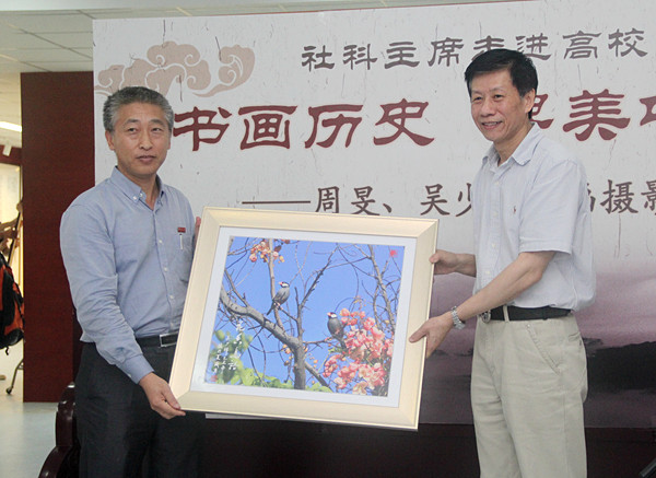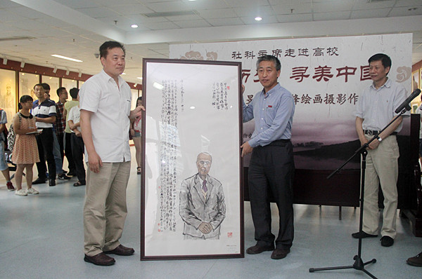 开幕式上,周旻、吴少锋分别向我校赠送了画作《许东亮》和全部参展摄影作品。