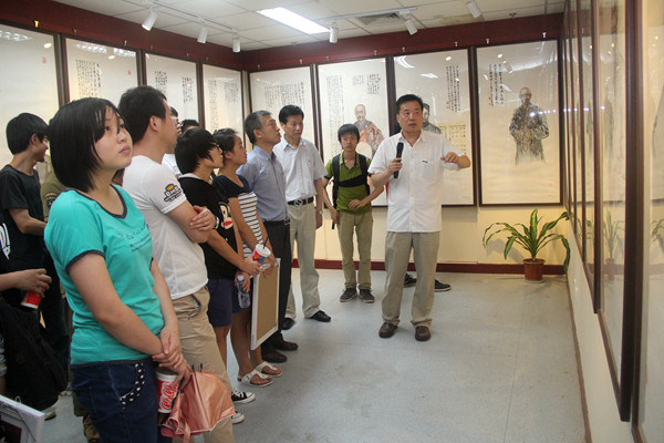 周旻向我校师生介绍其参展的画作