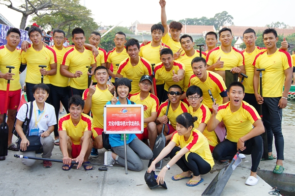 功夫不负有心人,比赛当天,文化中国华侨大学龙舟队从来自海内外的15支队伍中脱颖而出,力夺冠军宝座,用“第一”的成绩为自己争光,为华大争光。