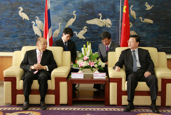 中国国务院侨办副主任马儒沛与泰国副总理兼外交部长素拉蓬(左)会谈(吴天适 摄)
