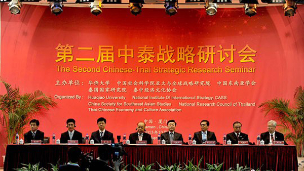 本届中泰战略研讨会由华侨大学、中国社会科学院亚太与全球战略研究院、中国东南亚学会、泰国国家研究院、泰中经济文化协会联合主办。首届研讨会于去年10月在泰国曼谷召开,为中泰两国的文化合作交流作出积极的贡献。