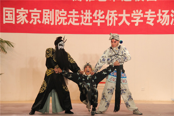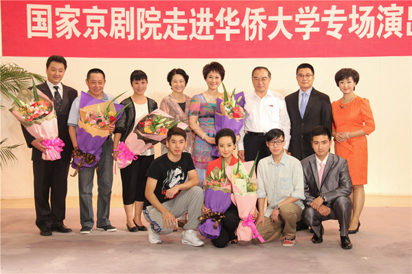 昨晚,“2013年高雅艺术进校园——国家京剧院走进华侨大学专场”在厦门校区王源兴国际会议中心204报告厅上演。校长贾益民、党委副书记朱琦环会见了国家京剧院三团团长张建国、国家一级演员董圆圆,我国著名作曲家与音乐教育家、我校音乐舞蹈学院兼职教授郭祖荣先生一同参加会见,并到场观看表演。